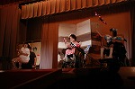 中学部では、「まる子 学校祭に行く」をテーマに舞台発表を行いました。まる子、丸尾君、花輪君の3人が、一緒に学校祭を盛り上げる仲間を探しに行く物語です。自分たちでやりたい役を選んだこともあり、それぞれの役(まる子と友達・バンド・噺家・ダンサー・お笑い芸人)になりきって元気いっぱい演じることができました。