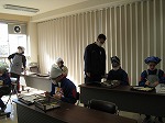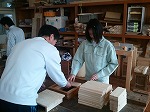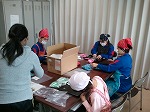 中学部では、将来の職業生活を通した社会参加をめざし、週6時間、作業学習に取り組んでいます。作業学習では、基本的な技能向上や職業に対する関心を高めることを主なねらいとしています。作業種目は、鍋敷き製作、足ふきマット製作、木工、空き缶リサイクル、祝儀袋製作等があり、生徒一人一人の実態に合わせた小グループ編成を行い、どの生徒も1〜3種目の作業に取り組んでいます。作業製品は、行事等で校内販売する他にも、作業学習を通した地域理解・地域交流を念頭に、一般の事業所・施設等にも販売協力をいただいています。