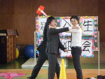 今年は12名の新入生を高等部に迎えました。4月27日には新入生歓迎会がありました。1年生の自己紹介があり、2,3年生は高等部の年間行事について説明をしてくれました。楽しそうな行事がたくさんあり、新入生も真剣な表情な聞いていました。その後はジェスチャーゲームやダンスで楽しみました。新しく来られた先生方の出し物にもみんな大盛り上がりでした。初めてのことや分からないことも多く、緊張した様子の新入生でしたが歓迎会では友だちや先輩たちと楽しい時間を過ごすことができました。平成23年度も明るく元気な高等部です!